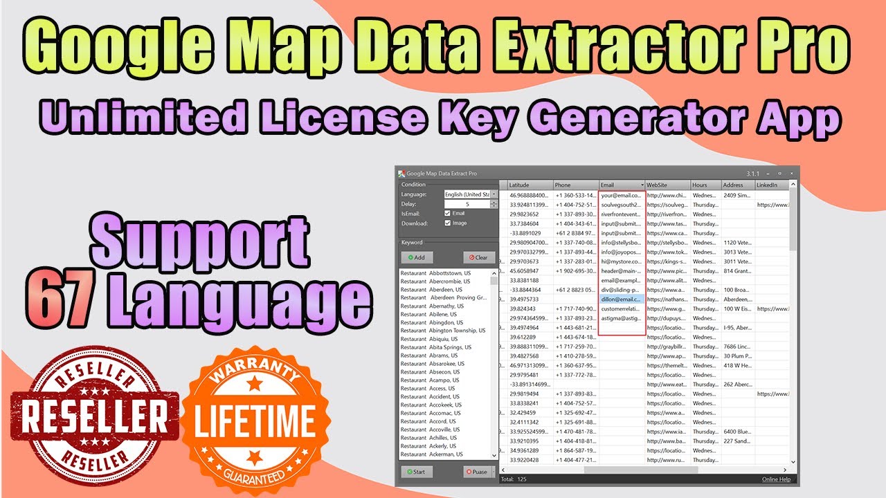 Google Map Data Extractor Pro with Multi-Language 3.2.1 + Unlimited License Key Generator App(Full Reseller) Amazing Features:
